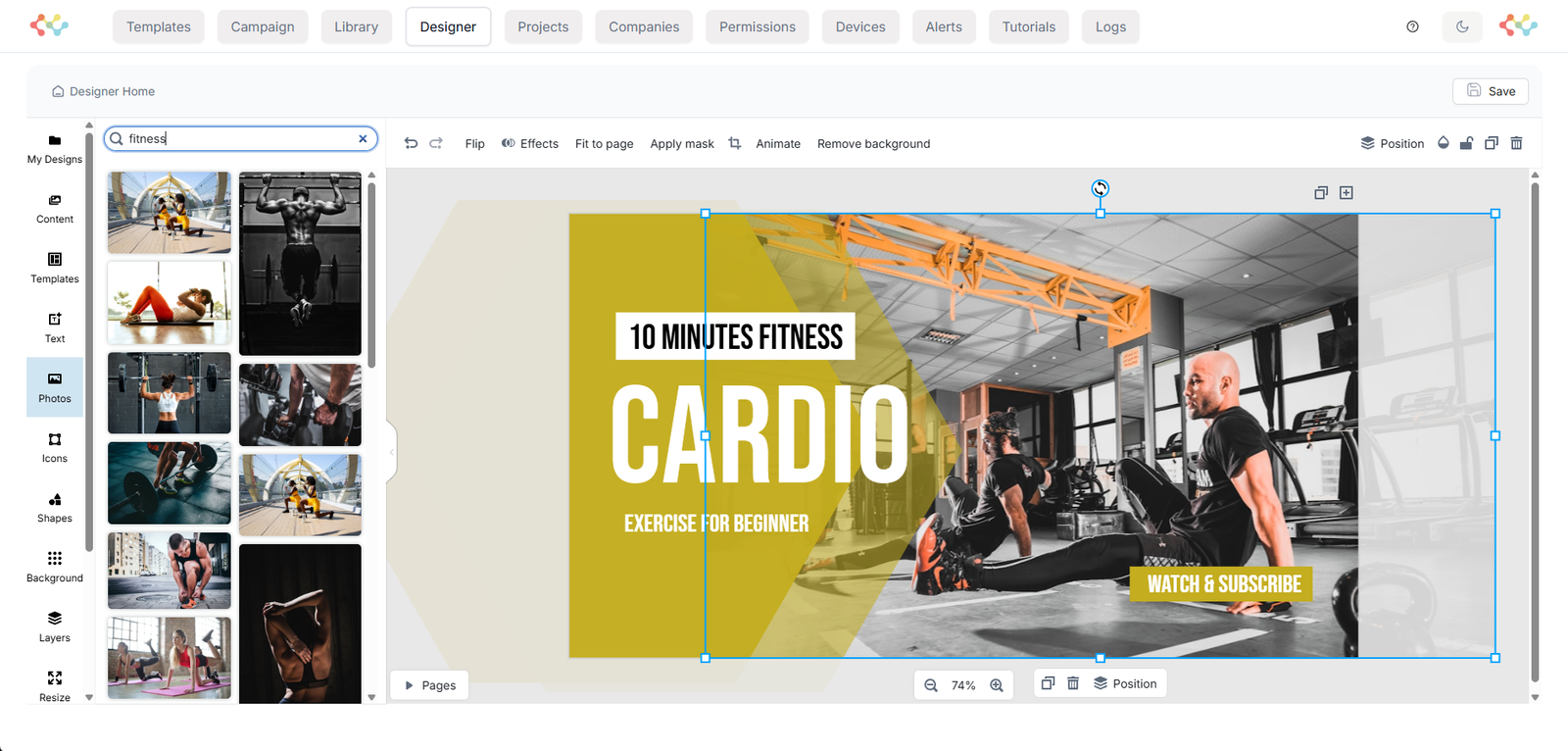 Select from 1000s of templates and 1,000,000 stock images and videos – or create your own masterpiece with an intuitive drag-n-drop content creator platform.