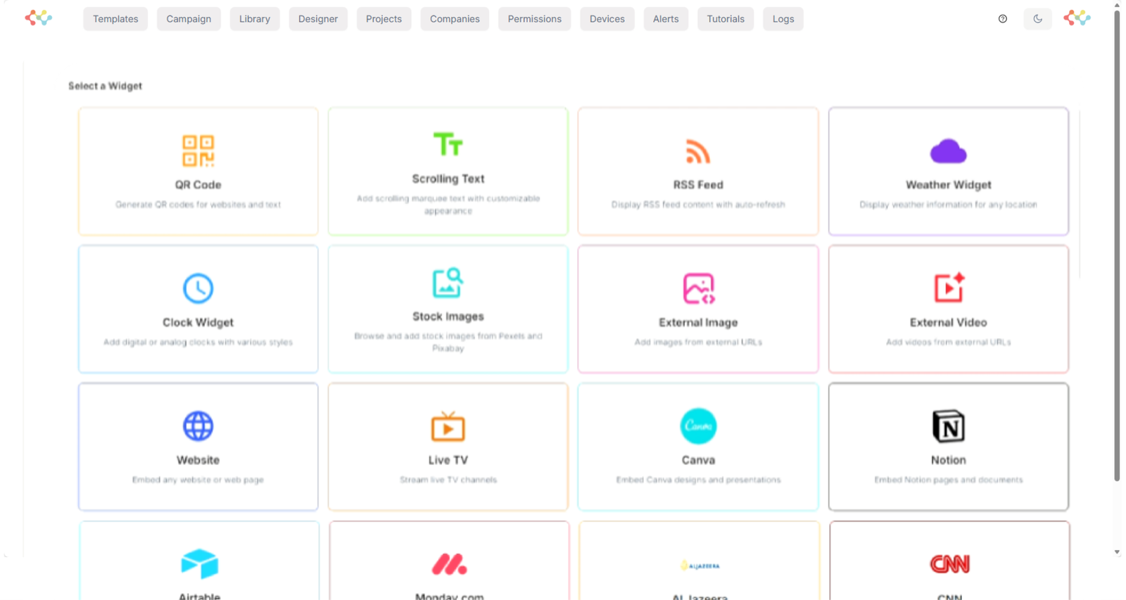 Easily display live data, social feeds, weather, calendars, dashboards, and more with Zoney’s growing library of plug-and-play widgets.